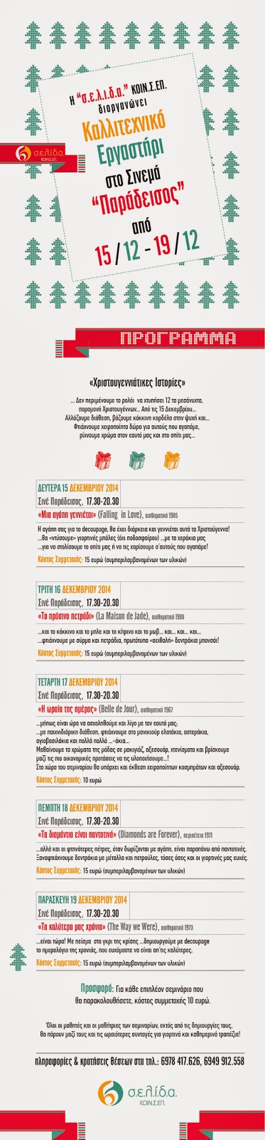 Να σημειωθεί ότι η έναρξη των μαθημάτων θα γίνει τη Δευτέρα 12 Ιανουαρίου 2015.